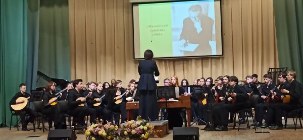 Вечером Большой зал колледжа гостеприимно распахнул свои двери для всех любителей творчества Г.Свиридова. «Музыка – лучшее, что есть во мне…» – так назывался концерт оркестра русских народных инструментов, который стал ярким посвящением знаменательной дате. Названием послужило высказывание самого композитора, выражающее его жизненным кредо.