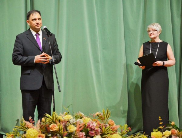 С поздравительным словом к участникам мероприятия обратился директор Минского государственного музыкального колледжа, председатель Республиканского учебно-методического объединения в сфере среднего специального образования по специальностям в области культуры, председатель Минской городской методической секции по хоровым дисциплинам А.И. Снитко. Алексей Ивановичпожелалвсему коллективу успешной плодотворной деятельности в Новом году и ярких профессиональных достижений. Особо почетно, что в этот день наш колледж принимал у себя в гостях Министра образования Республики Беларусь, Председателя Республиканского общественного объединения «Белая Русь» А.И. Иванца. Андрей Иванович в знак благодарности колледжу за многолетнее сотрудничество, невероятную творческую активность наших педагогов и учащихся в общественной и концертной жизни страны вручил ценный дар — уникальную балалайку, которая призвана мотивировать талантливых ребят на покорение новых вершин исполнительского мастерства.