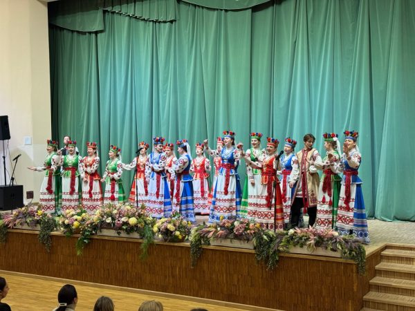 С первых минут в зале воцарилась по-настоящему праздничная атмосфера, на которую настроило выступление обладателя поощрительной премии специального фонда Президента Республики Беларусь по поддержке талантливой молодёжи, лауреата республиканских и международных конкурсов Народного хора «Блiскавiца» (руководитель А. Миловидова, концертмейстер Е. Мороз) с белорусской народной песней «Ой, да, на го́ры».