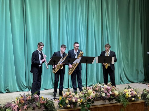 Свой музыкальный подарок преподнес слушателям лауреат международных конкурсов Квартет саксофонистов в составе учащихся Г. Косаржевского, Я. Ластовского, Т. Расохи, И. Бондина (руководитель П. Казак), который порадовал гостей Попурри из анимэ «Унесённые призраками» Хиса́иси Дзё и погрузил их в мир сказочных приключений.