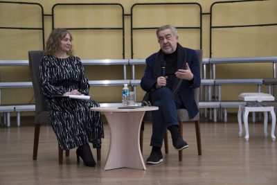 Перед будущими артистами и музыкантами стоял не просто спикер, а многогранная личность: Народный артист Беларуси, Заслуженный деятель искусств Беларуси, режиссёр, сценарист, актёр, художественный руководитель Театра-студии киноактера и профессор Белорусской государственной академии искусств. Его миссия на творческой встрече – приоткрыть дверь в большой мир кино и искусства.